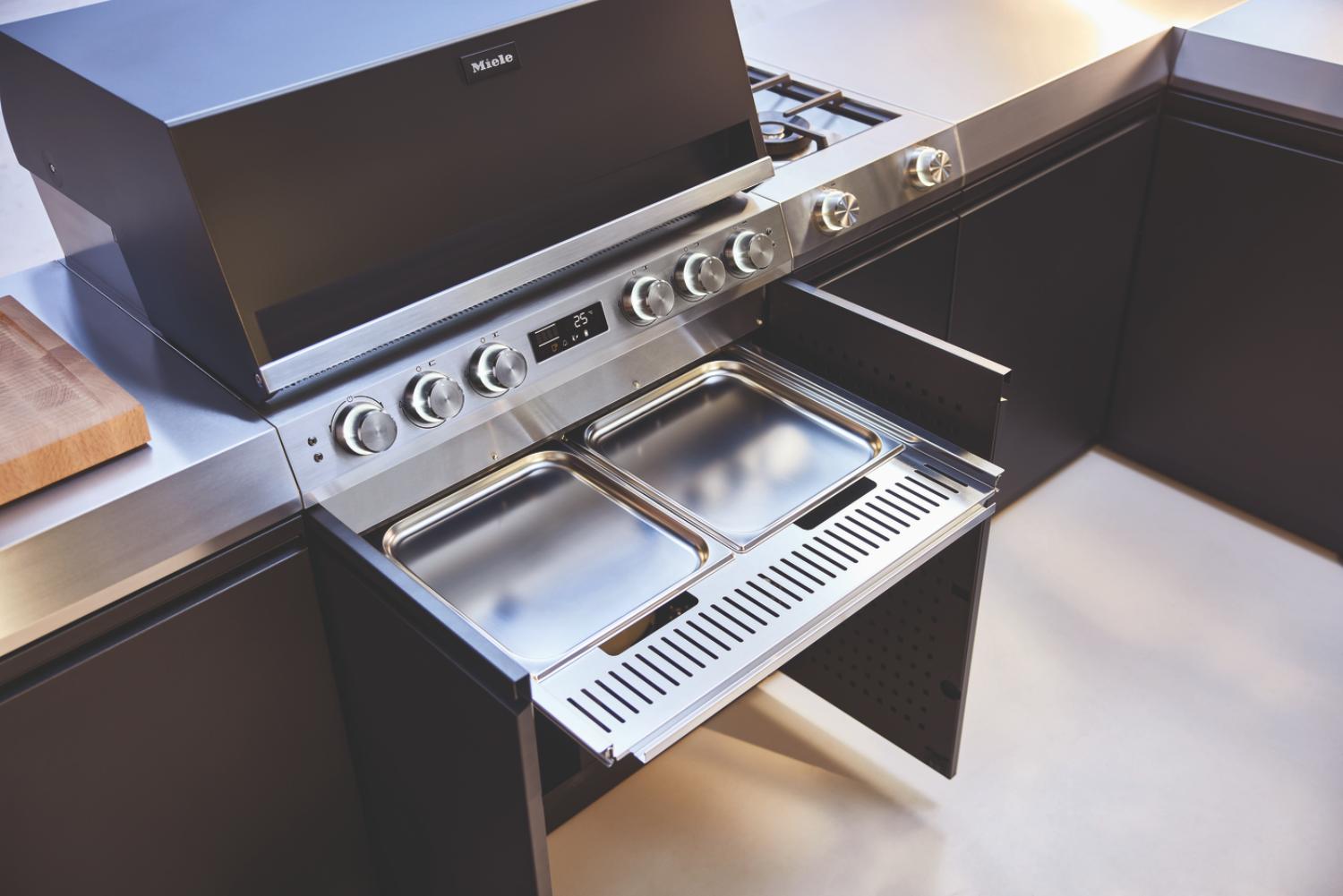Das durchdachte Modulkonzept macht die Miele Outdoor-Küche besonders flexibel. Der verstellbare Einlegeboden sorgt für Ordnung und maximale Nutzung des Stauraums.