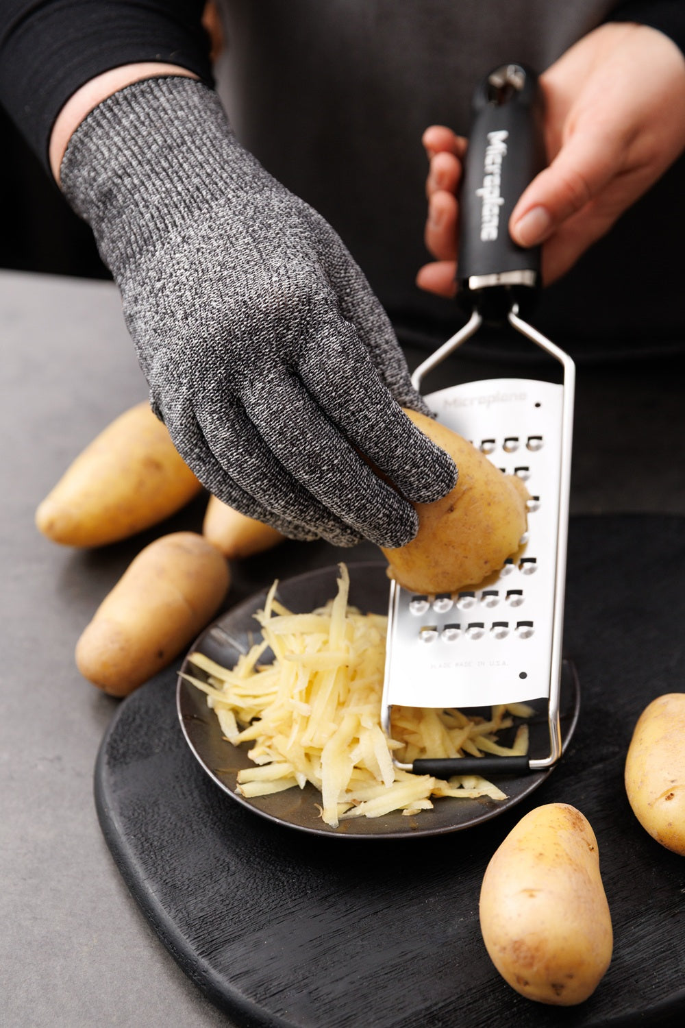 Der Microplane Schutzhandschuh schützt Ihre Finger und ermöglicht Ihnen sorgenfreies Reiben. Durch seine Dehnbarkeit passt er auf jede Hand. Sowohl für Rechts- als auch für Linkshänder geeignet. Einfache Reinigung: Waschbar bei 60° in der Waschmaschine.