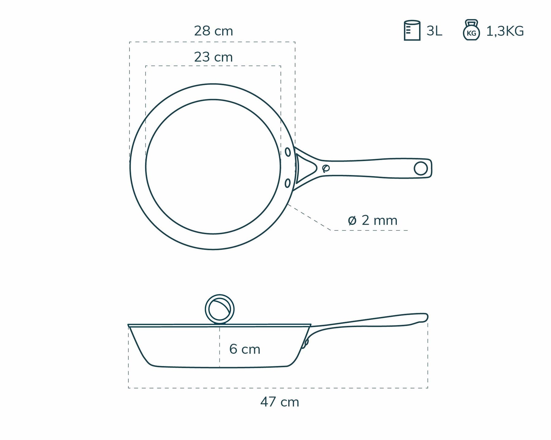 Dank der besonders gleichmäßigen Hitzeverteilung garst du effizient, vitaminschonend – und sogar energiesparend, denn schon bei niedrigen Stufen erreicht die Pfanne hohe Temperaturen.