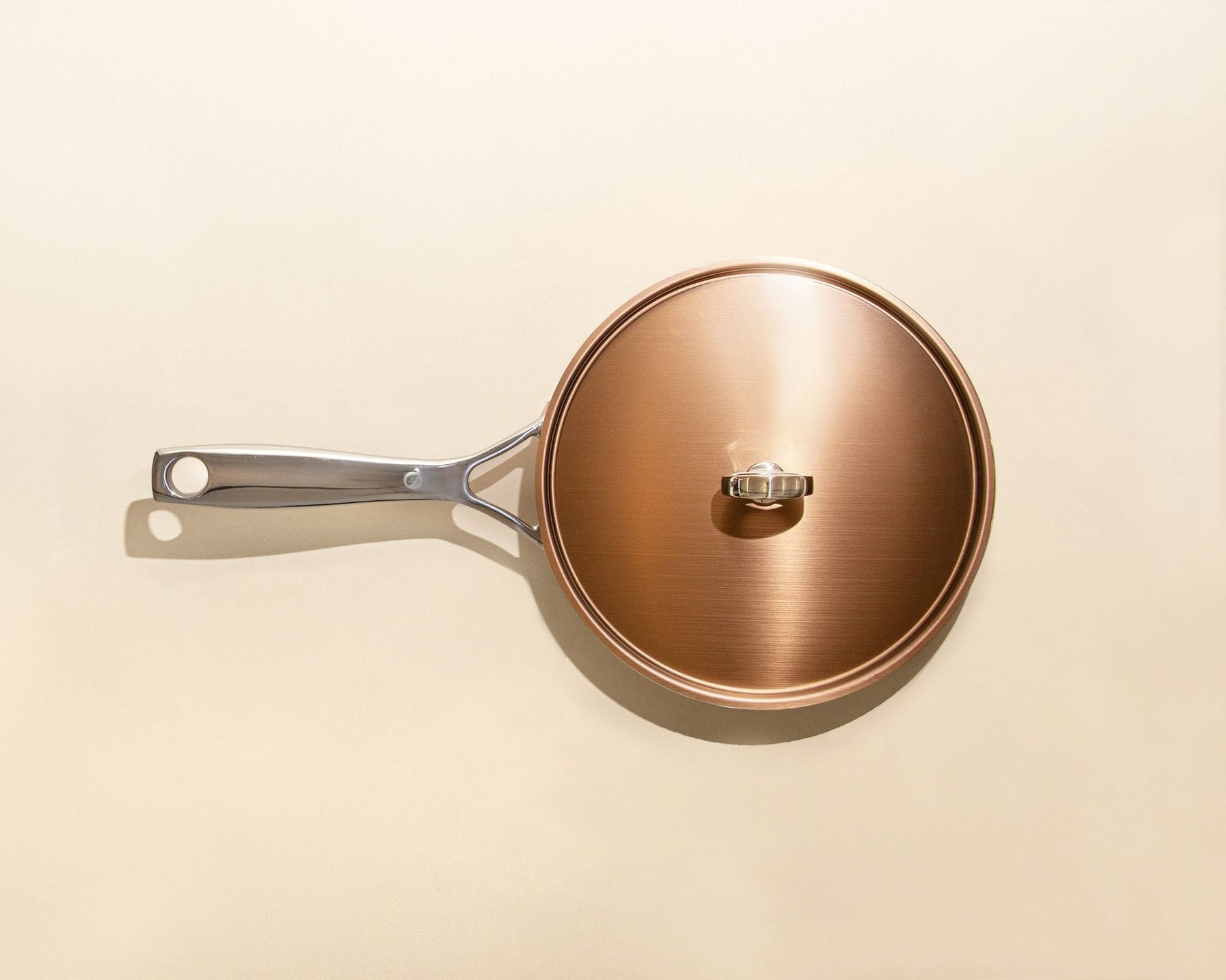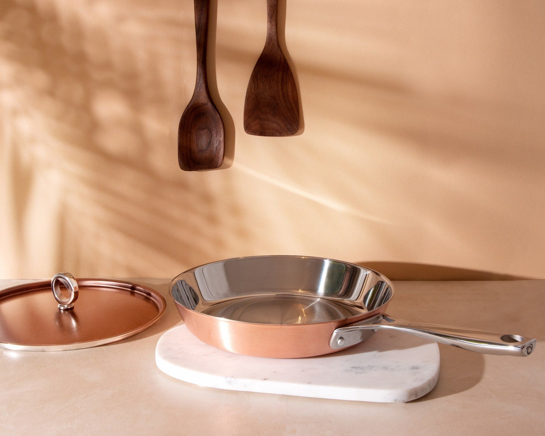 Die Innenschicht aus Edelstahl macht die Olavson Pfanne robust, langlebig und deutlich pflegeleichter als pure Kupferpfannen.