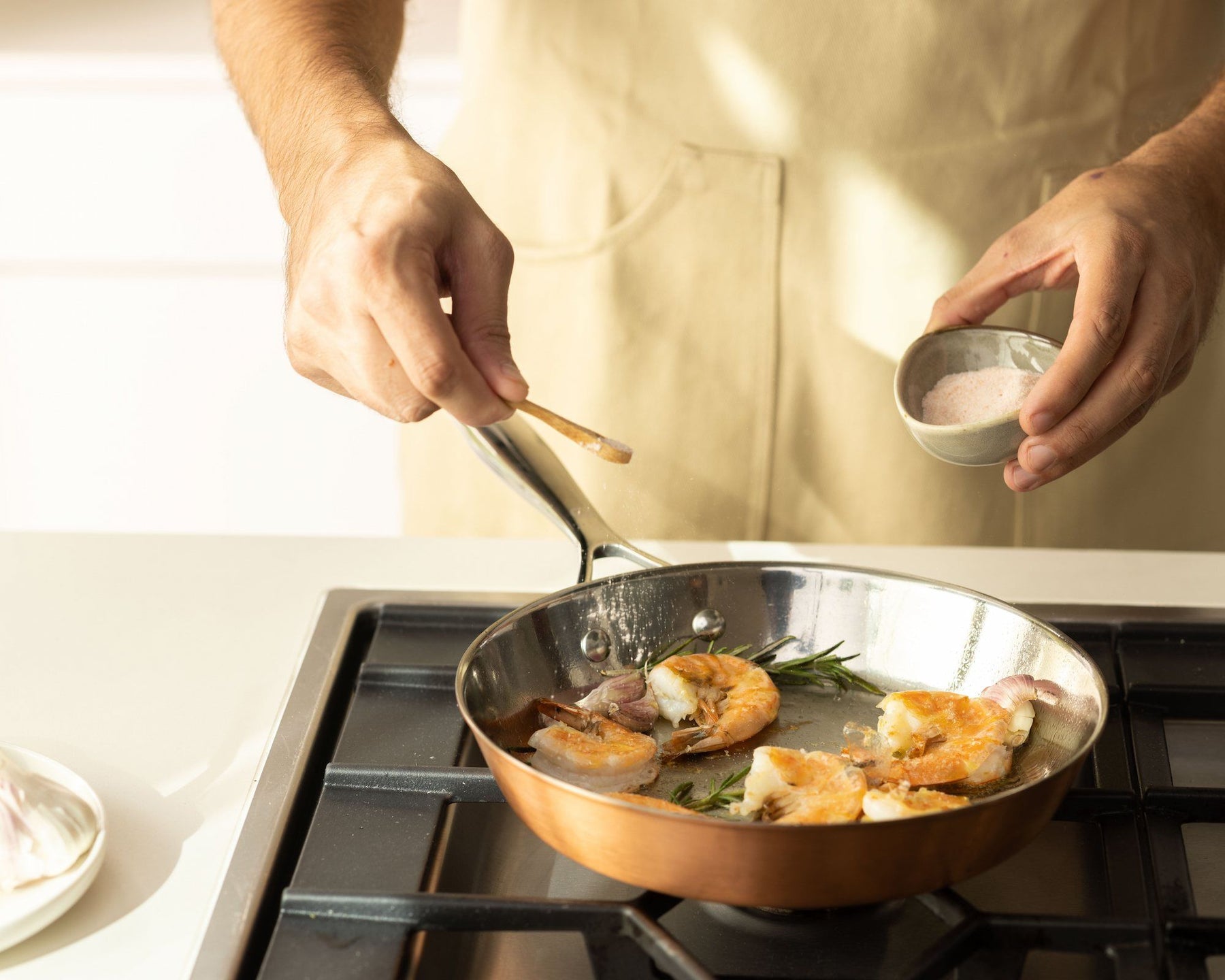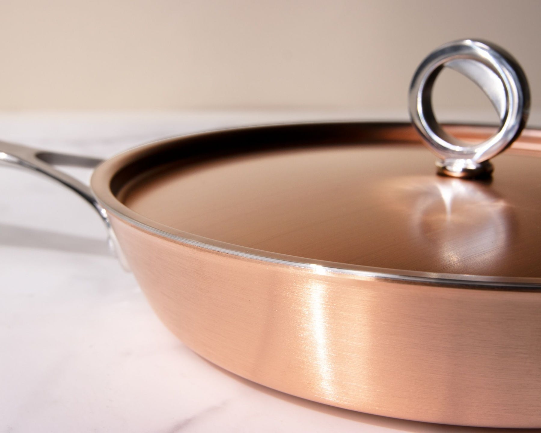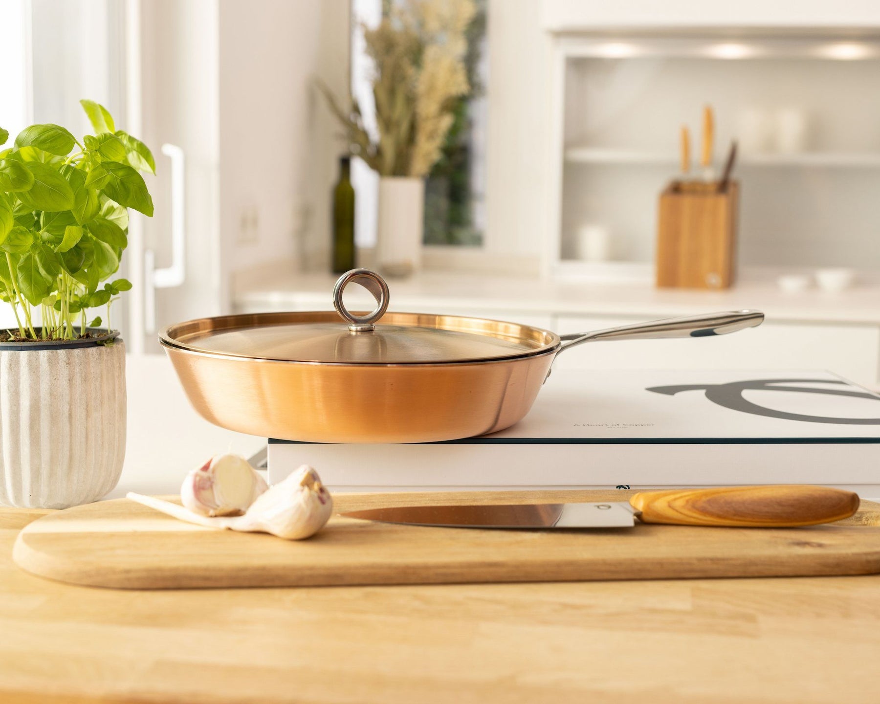Kupfer ist das Kochmetall mit der höchsten Wärmeleitfähigkeit und sorgt so für hervorragende Ergebnisse. Durch die gleichmäßige Wärmeverteilung kann besonders präzise, kontrolliert und effizient auf den Punkt gebraten werden.