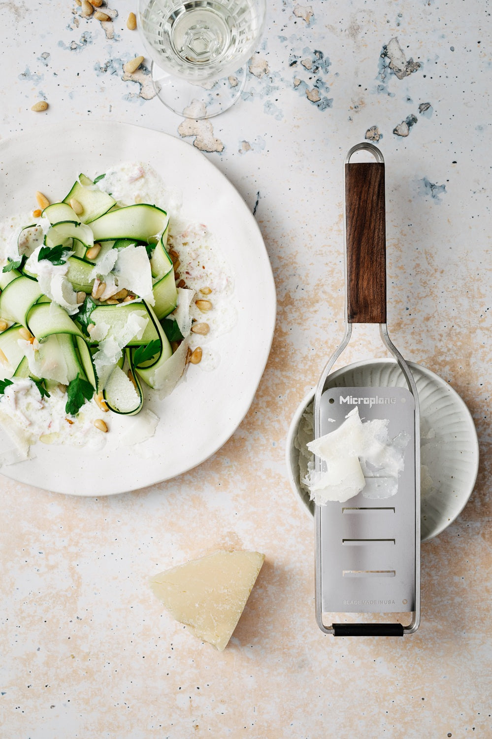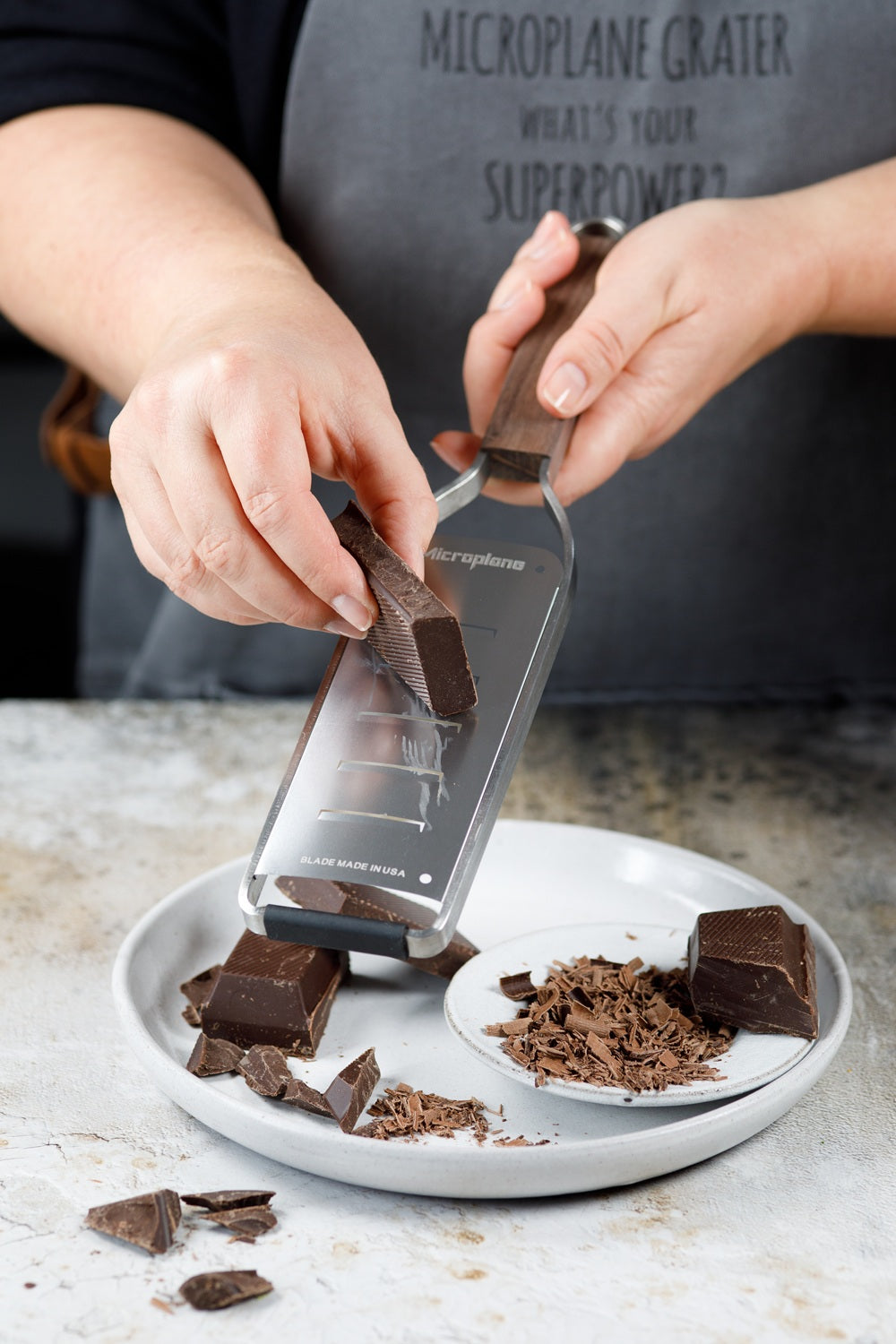 Mit der großen Raspel und deren sechs länglichen, messerscharfen Klingen können Sie mühelos Schokolade, Karotten, Käse, Trüffel, Butter uvm. in breite Blättchen hobeln.