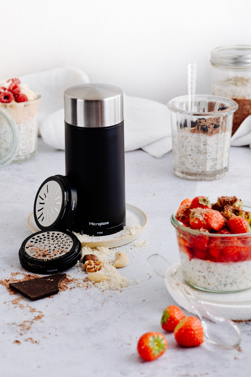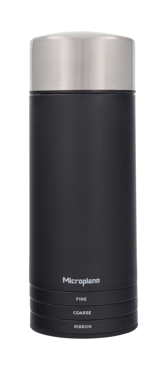 Microplane - Universal Mühle 3 in 1 - Mit 3 auswechselbare Klingen Microplane Universal-Mühle. 3 Stufen in 1 Mühle: Fein, Mittel/Breit und Grob. Ideal für Hartkäse, Nüsse, Schokolade, Kokosnuss, Samen, Gewürze (hart) und Pfefferkörner.