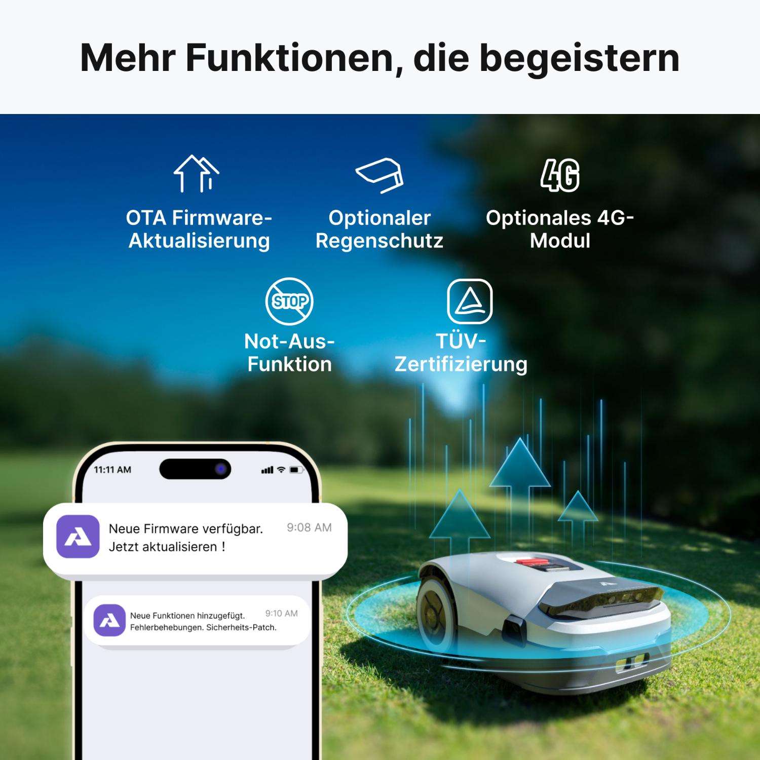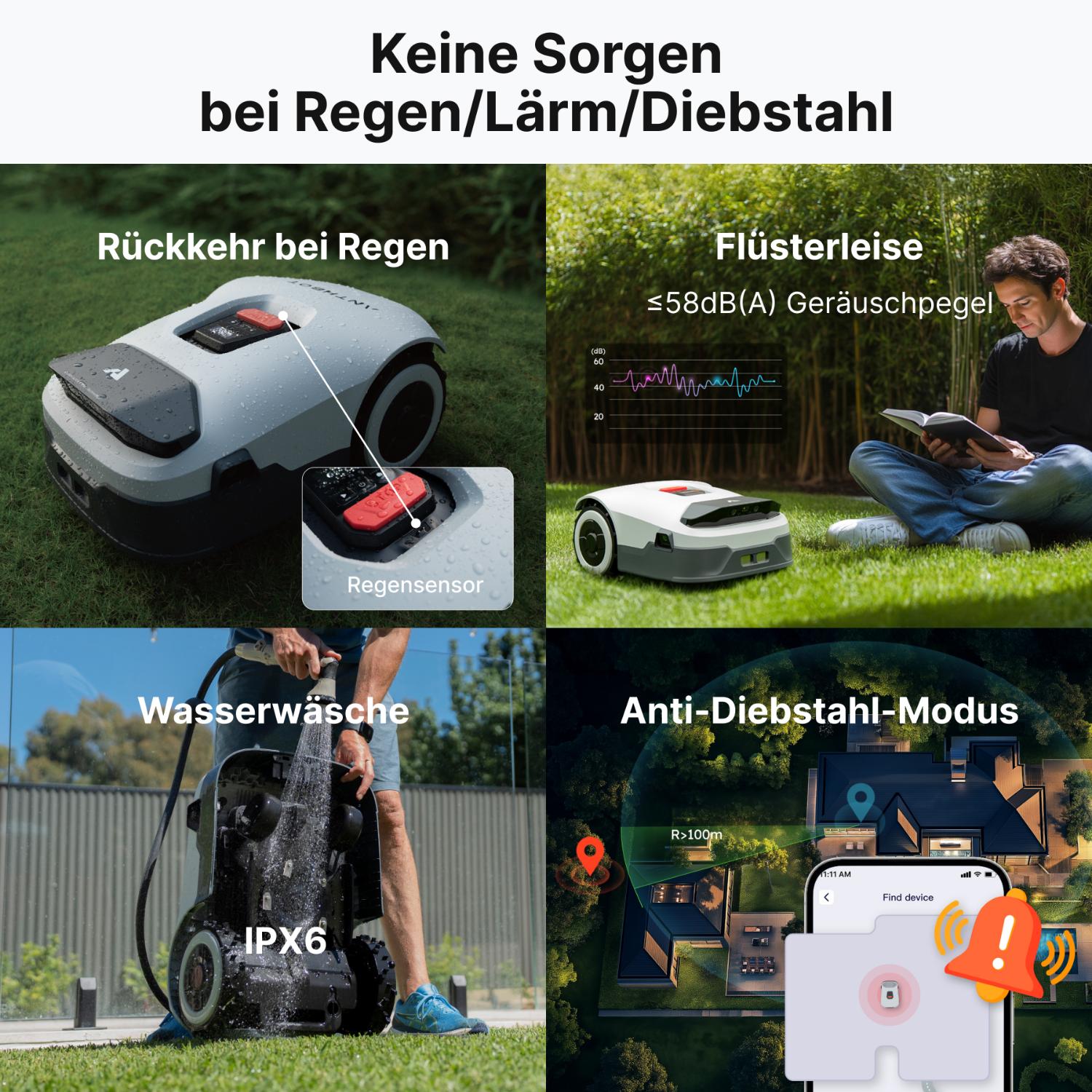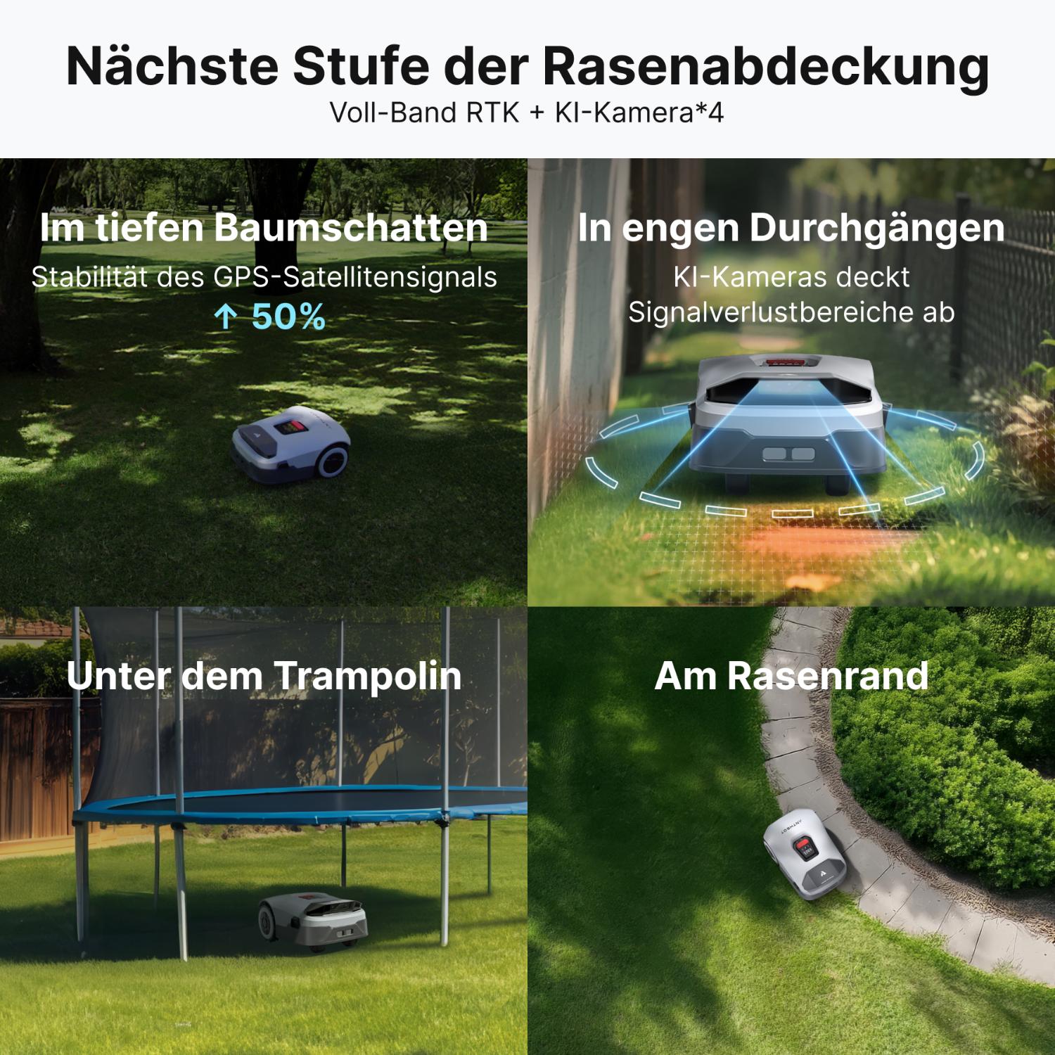 Egal ob enge Passagen, Bäume, Beete oder Gartenmöbel – die Genie-Roboter navigieren sicher und präzise. Die Modelle kartieren den Garten eigenständig, erstellen virtuelle Grenzen und sorgen dafür, dass jeder Bereich zuverlässig erreicht wird.