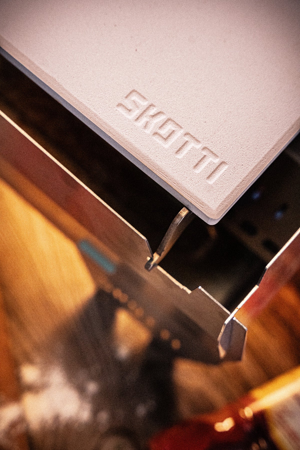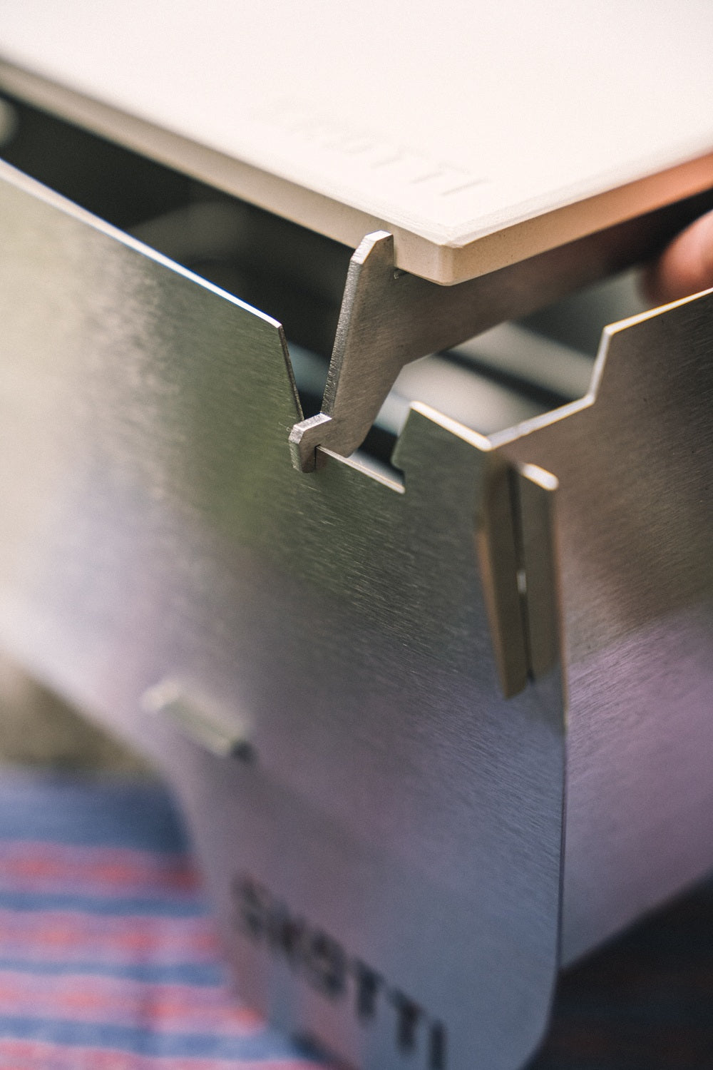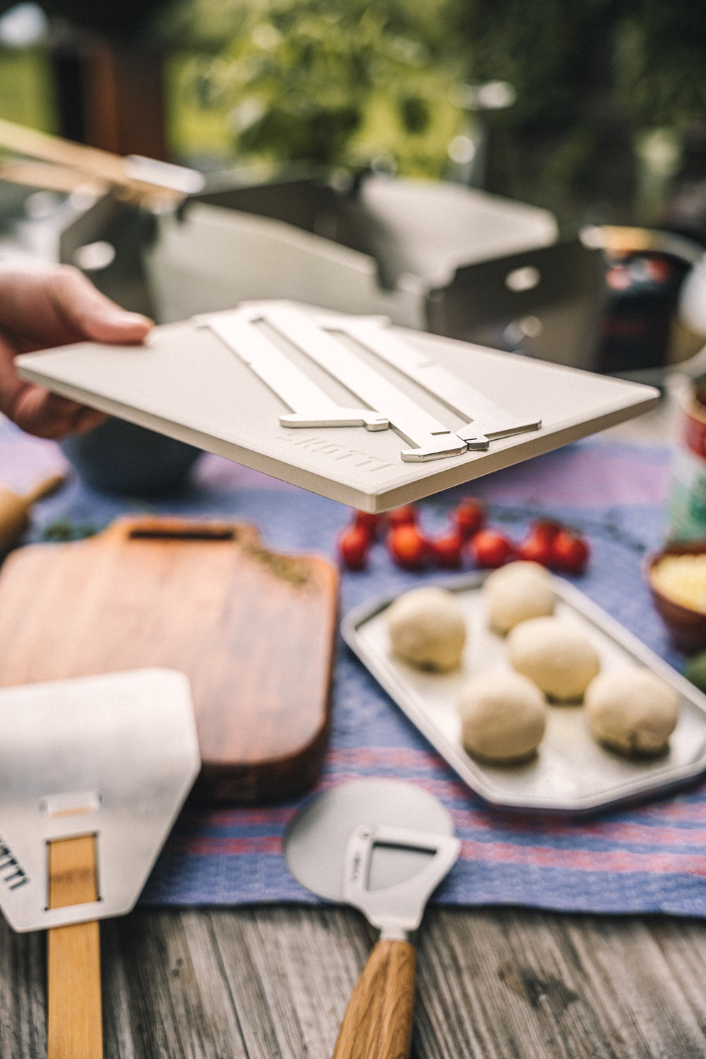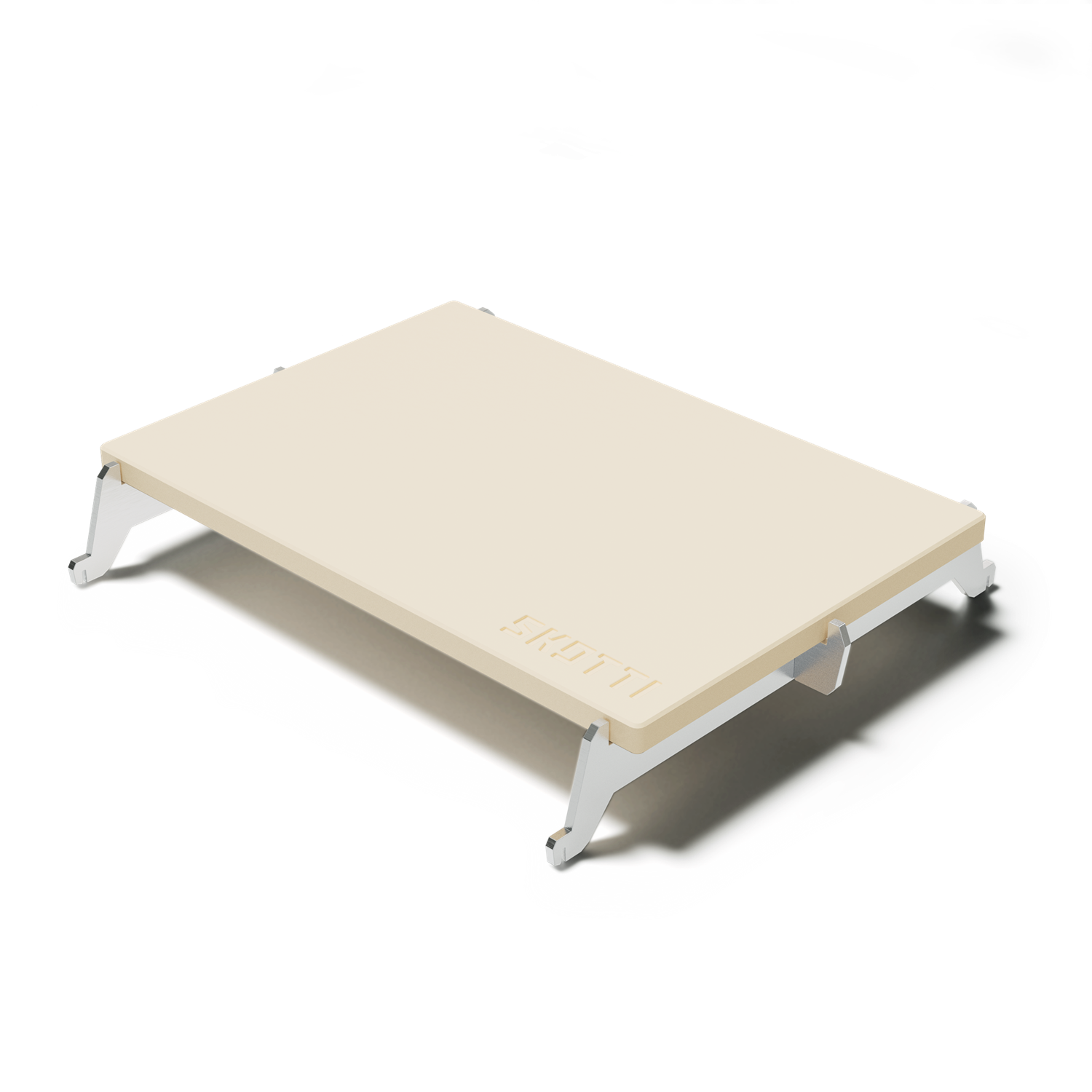 Der Pizzastein lässt sich schnell und einfach in den SKOTTI einsetzen – mit den beiliegenden Edelstahlteilen fixieren, mit der SKOTTI CAP aufheizen und schon ist Ihr mobiler Pizzaofen einsatzbereit. Durch seine offenporige Struktur klebt der Teig nicht und wird gleichmäßig gegart. Nach dem Backen lässt sich der STONE im Handumdrehen reinigen – einfach abwischen, fertig!