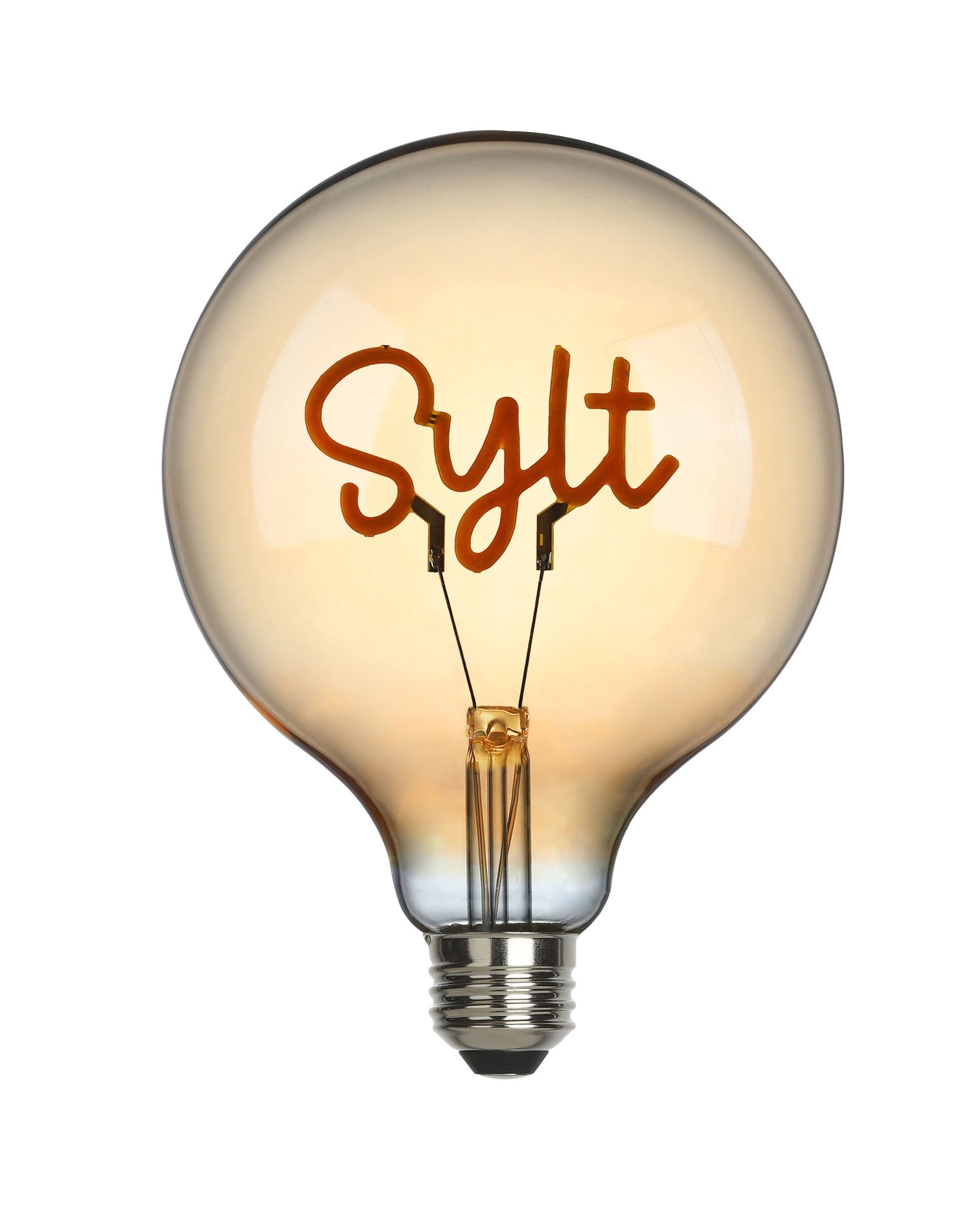 • Sylt: Bringen Sie das Gefühl von Sand, Meer und Weite in Ihr Zuhause mit diesem charmanten LED-Leuchtmittel. Der Schriftzug „Sylt“ im Inneren der Glühbirne wird durch warmweißes Licht stimmungsvoll hervorgehoben und versetzt jeden Raum in eine entspannte Urlaubsatmosphäre. Ob als Dekoration für Sylt-Fans oder als stilvolles Geschenk – dieses Leuchtmittel ist eine ausgezeichnete Wahl.