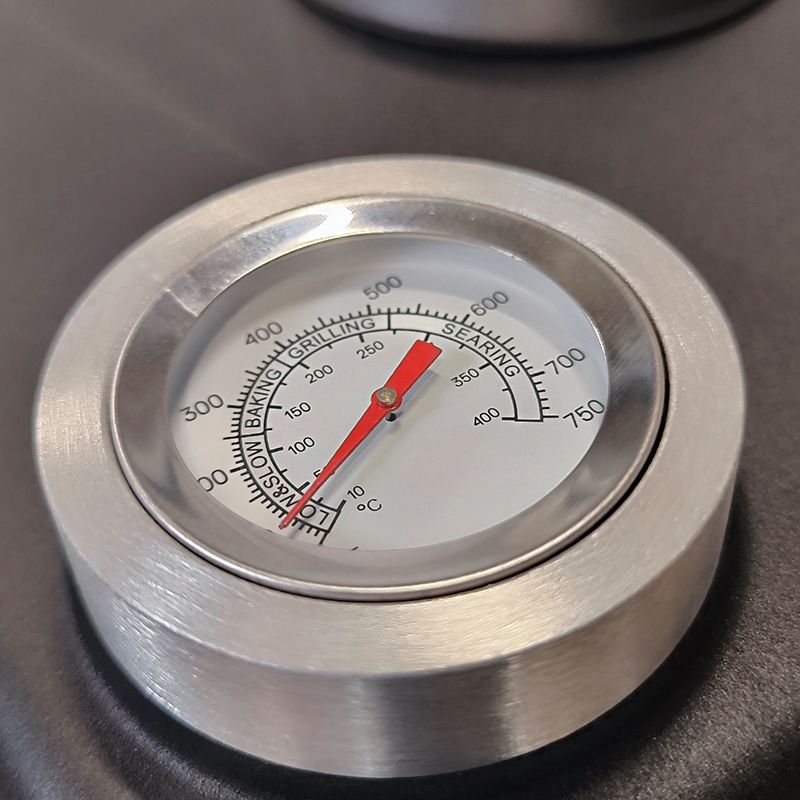 • Garhaube mit integriertem Thermometer für vielseitige Grillmethoden